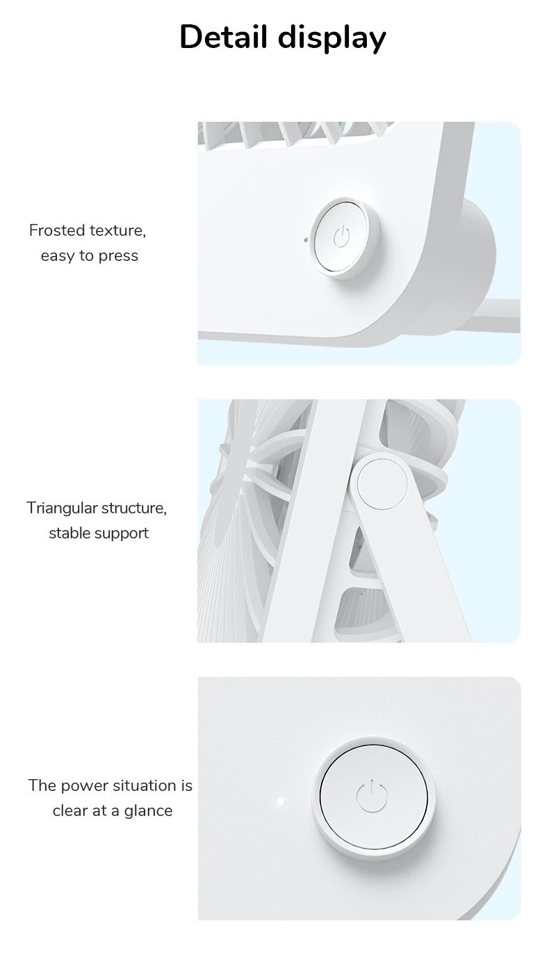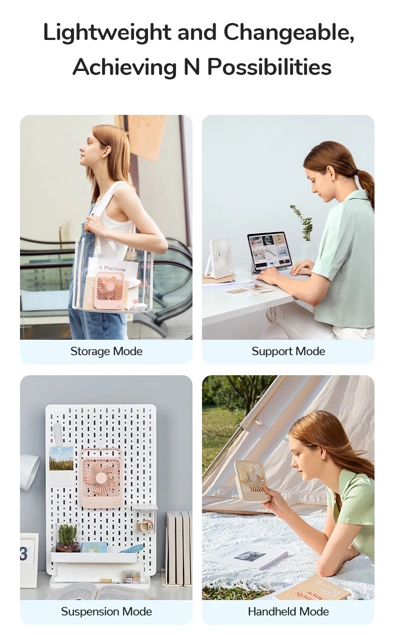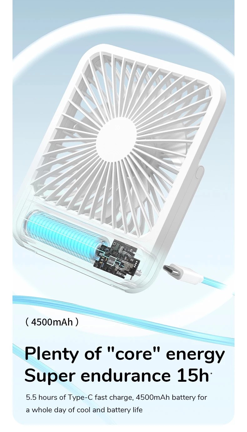 Cordless and Rechargeable:This desktop fan has a built-in 4500 mAh energy-saving battery, which is not anxious for going out. And it is equipped with a USB interface, can be used as a power bank in an emergency as well.