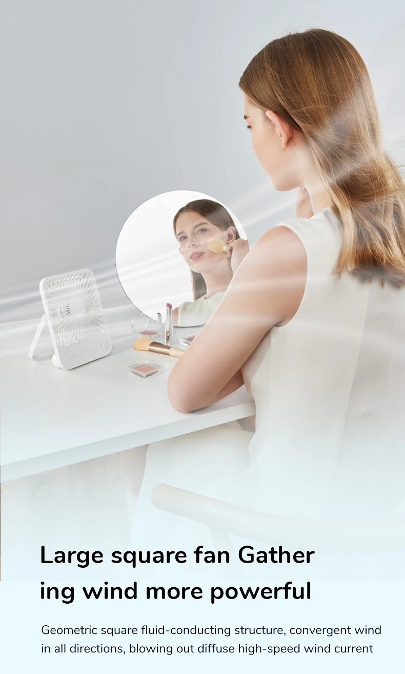 180°Foldable:FA26 desktop fan with a 180-degree swivel stand that can stand or hang. Ultra-wide angle square-shaped diverting body structure gathers wind power on all sides which can blow high-speed airflow.