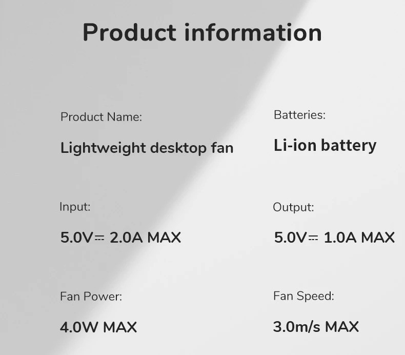 Portable & Gift Choice: FA26 desk fan weighs only 216g with cordless design, lighter, thinner, and more portable. It's perfect for use in office, desktop, bedroom,kitchen, camping, travel, etc. Practicality as a gift for women men kids.
