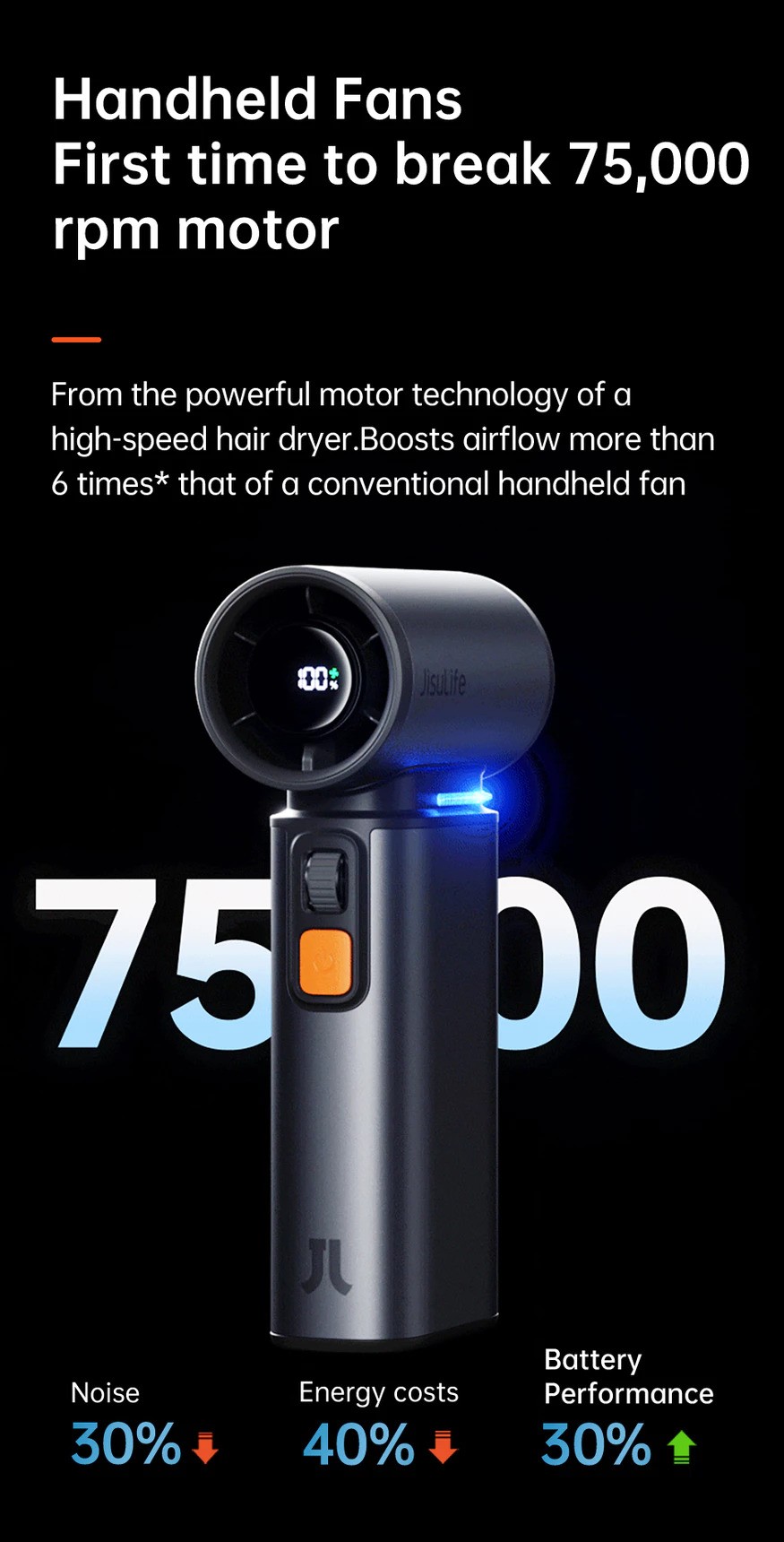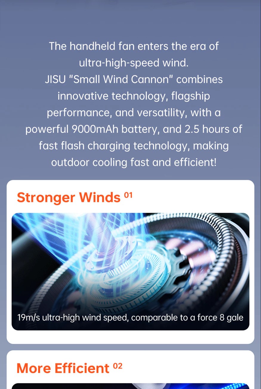 Powerful Airflow: Despite its compact size, this handheld fan delivers a surprising airflow of 19m/s. With 100 adjustable speed settings, you can control the fan's intensity to ensure you get the cooling effect you desire.