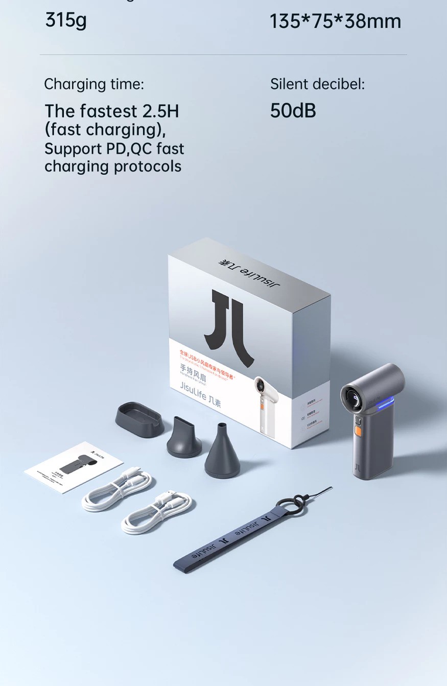 Multifunctional Design: Apart from being a handheld fan, it comes with three multifunctional accessories to meet various usage scenarios. Additionally, it has a built-in LED light for emergency illumination.