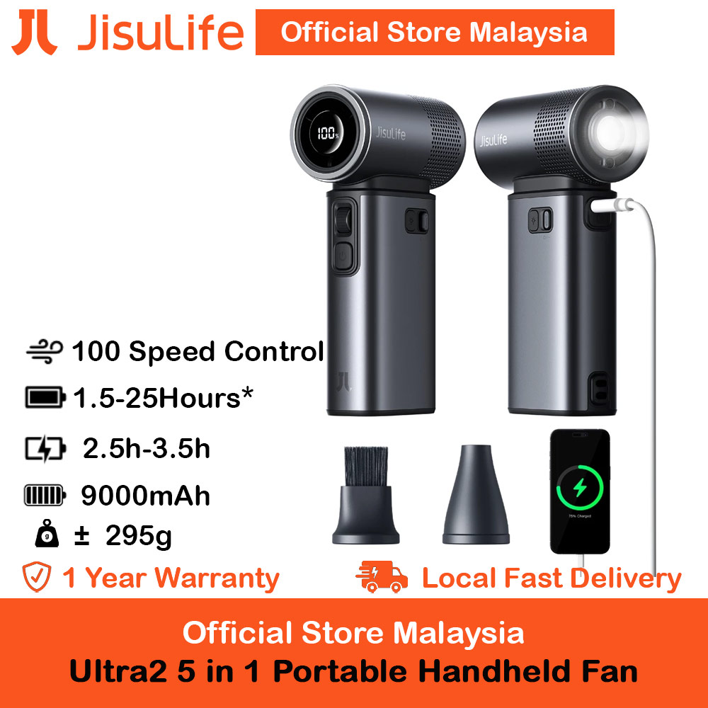 Beat the Malaysian heat anytime, anywhere with the Jisulife Ultra 2 Portable Handheld Fan. Designed with a powerful 9,000mAh battery, this upgraded mini fan offers up to 25 hours of cooling on a single charge – perfect for daily commutes, shopping, office, outdoor events, or even travel..