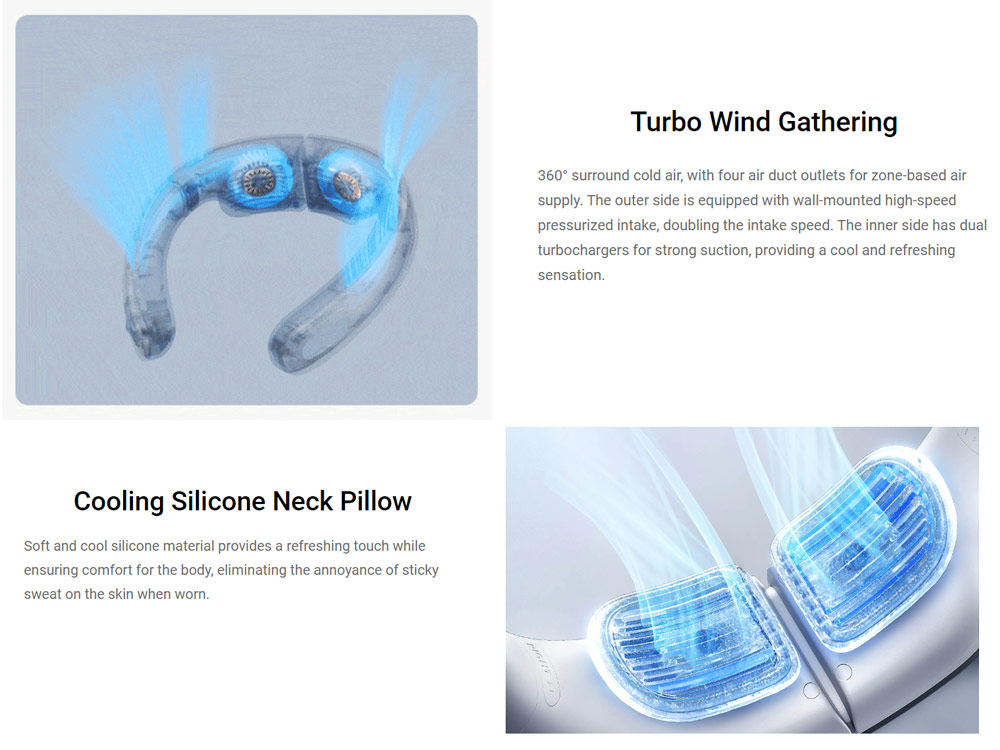 Safe | Portable - Neck fan uses pro series safety chip, bladeless fan, hidden air inlet on the back to ensure safe operation, children and the elderly can use it with confidence. Hand-free portable neck fan is easy to carry.